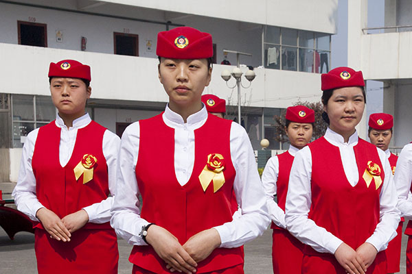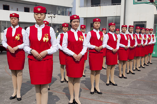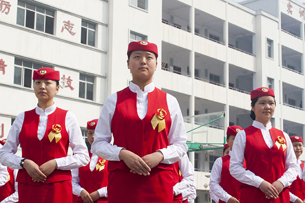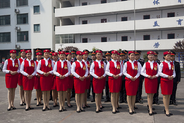 3月18日上午,巴东职高操场上,59名充满青春活力的靓女俊男,着一身鲜艳的职业装,正在紧张训练。