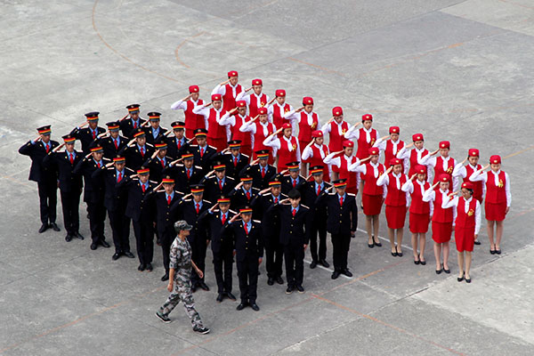 随着教官的的一声口令,整齐划一的队形出现了,倏忽间又变换为一幅美丽的几何图案。这是巴东职高高铁乘务专业学生训练的一处剪影,他们的训练引人注目,众多人士争相观看,称他们是巴东职高的“弄潮儿”。