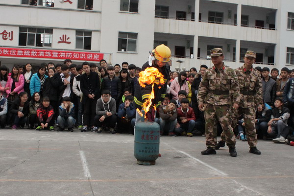 演练假设上课期间,学校发生紧急情况。警报响起,接到广播通知后,各班任课老师迅速组织学生疏散到操场。演练开始后,各班学生在教师的指导下按预定的逃生路线有序疏散。在三分钟的时间里,全部师生安全撤离到学校操场上,清点人数,全部到齐。消防安全知识讲座随即展开,授课由消防大队指导员亲自主讲,他结合常见问题和学校实际,为学生们讲解了消防安全基本常识、灭火器使用方法和火灾现场的疏散逃生等。