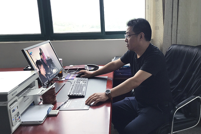 5月20日,巴东职高党支部书记廖正贵正在电脑前审看即将在湖北电视台《今日视点》栏目播出的向田州同学荣获全国“最美中职生”称号事迹报道的稿件。