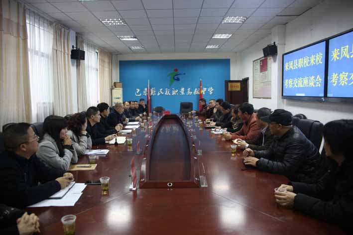 11月17日,来凤中等职业学校校长周兴中一行10人来到巴东职高,就中等职业学校技能教学、专业建设、学生管理等内容进行考察,巴东职高领导及中层以上干部、部分专业教师陪同考察并与客人进行了深入广泛的交流。