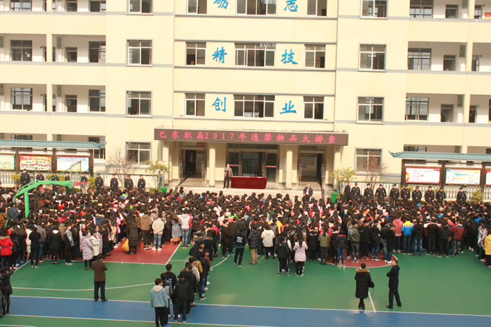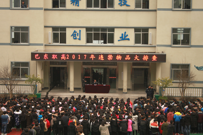 为进一步强化管理,杜绝校园安全事故,12月19日上午,巴东职高开展警校联合行动,大规模排查违禁物品,并邀请公安干警给同学们现场进行安全法制教育活动。