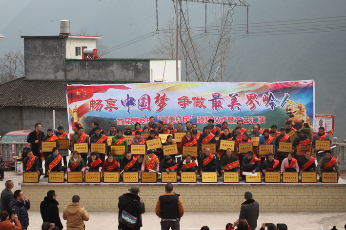 这场主题为“畅享中国梦,争做最美界岭人”的活动由巴东县沿渡河镇人民政府、界岭村委会主办,巴东职高和相关单位协办。在活动现场,经过严格评选而胜出的24名“最美界岭人”和37名提名奖获得者身着授带、走上舞台,从颁奖嘉宾手中接过了代表荣誉的奖牌,得到了别样的新年礼物,现场响起了阵阵热烈的掌声。