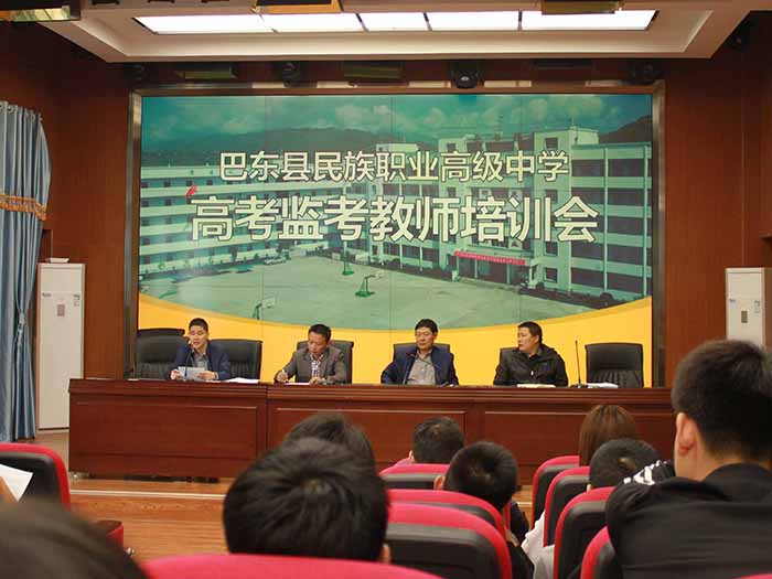 高考在即,6月2日,巴东职高在多媒体教室举行2018年高考监考教师培训会,会议由副校长郑开春主持,副校长刘德龙、教务主任谭树群分别对老师们进行培训。