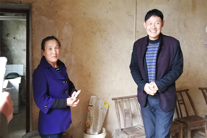 来到徐龙兰家,郑开春书记仔细询问学生谭春丽学习和身体情况,与徐龙兰聊家常,送祝福,最后鼓励徐龙兰一家发展产业,走上致富路。